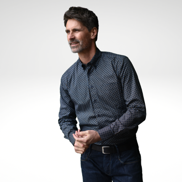 Overhemd met leuke details van het merk Henderson wat bekend staat om zijn perfecte pasvorm voor de heren met een grotere maat. Dit overhemd is gemaakt van 100% katoen.